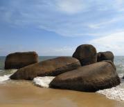 天涯海角是三亚旅游必去的景点,景色真美空气清新,海天一色就是景区小了点,重要景观就是大石头,爱在天涯海角,海枯石烂,公交车也比较方便。去的当天天气有点热晒的历害就是出口设的不太人性化明明可以直接从进口出去20米就是公交车站非要把出口设在一旁通过各种购物超市才能转出来还要再走100米才能到公交站,总体来说还是不错的。