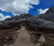 洛绒牛场就在雪山的下边,有很多的草坪,而且有河流,感觉这里的牛羊生活的特别的幸福。非常壮观的一个农场。而且景色也是非常美。洛绒牛场的草甸还是很美的,沿着木栈道边走边欣赏草场上的野花,旁边路上载着人的马帮不时走过,很有意境。