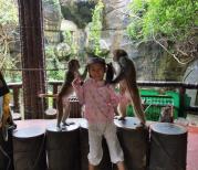 我们来南湾猴岛的时候是还下着雨,虽然不能好好的在揽车上看风景,不过孩子看的很开心,她很喜欢小猴子,在表演的地方跟小猴子拍了照,平时很少看到这种放养的,还有就是一定不能喂东西,不然猴子都会跑过来,有点吓人。