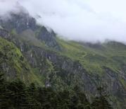 海螺沟人不太多,先坐景区大巴上山,山路十八弯,有点难受,然后坐缆车,还算运气好的,在缆车上就看到了冰川,一下缆车有点冷,还好带足了厚衣服。