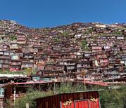 色达五明佛学院当地人有「色达山河一片红」的说法。这里的僧舍很壮观,连绵数公里的山谷布满了密密麻麻的小木棚屋。谷底和山梁上分布着几座寺庙和佛堂,建筑规模虽都不很大,但装饰考究而辉煌;身披桨红色僧袍的喇嘛和尼姑来来往往,空气中充满生机和祥和气氛。