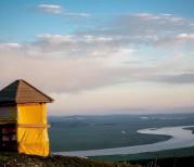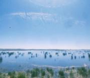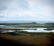唐克有观光车到九曲第一湾景区,景区有木栈道直达黄河边,也有自动扶梯直上山顶观景台。在观景台上可以清楚地看见黄河S形九曲,像一条玉带镶嵌在碧绿的湿地草原上,蒙古包零星地散落其中,兰天白云,胜似画卷,令人心忋神旷。
