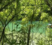 五龙河景区分下游门即南门,上游门即北门。瀑布,湖水等景观集中在下游门。上下游之间游览9.5公里。体力不好的建议从下游门进入,游览两小时左右返回。如果从上游门进入走到下游门,距离太长,还需出南门后再买15元每人中巴车票到上游门取车,景色总体不错,特别是湖水蓝绿有特色