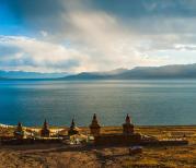 当惹雍措是西藏最古老的雍仲本教徒崇拜的最大的圣湖,也是西藏第三大湖。当惹雍措为南北走向,形如鞋底的大湖泊,三面环山。唯南岸达尔果山东侧有一缺口。达尔果山一列七峰,山体黝黑,顶复白雪,形状酷似7座整齐排列的金字塔。