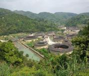 河坑土楼游客好少,这里基本上都是自由行的游客才会来的,不见任何的旅行团呐。住在塔下村,三个人包了一辆4人座小摩的过去的,一个人10rmb ,三个人30rmb ,包等2个半小时,并把我们载回塔下村。简单点说,即:30rmb包来回。摩的师傅会先把你们停放在一个观景台,慢慢步行上去也不用10分钟就可以看到河坑土楼群的“七星阵”了,确实壮观。(*没有一些网友说的那么夸张,这几段阶梯,慢慢走上去,其实一点也不累。) 观景台在河坑土楼群的正对面,不在景区内,所以这里眺望河坑土楼群是不收费的,但进去景区就要收取一人50rmb的门票。这观景台基本上没人看守,但沿路却不见任何垃圾,登上观景台前还有一个很大又干净