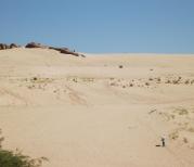 来赤峰的第一个景点就是玉龙沙湖,从市区大巴行一个半小时左右,经过后面几天行程才知道这是最近的景点了。因此地出土中国第一龙文物,故称玉龙。草原中的沙漠,尚有点绿色,蓝天下还有一片纯净的湖泊,风景不错。太阳下很晒,可只要往沙堆中任一棵树下一躲,立刻感觉凉意习习。
