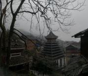 趁着薄雾前往位于肇兴以东7公里的山腰上的堂安,只是听说这地方只是一座只有160多户,800多人口的侗寨,是中国和挪威合作建立的世界上唯一的一座侗族生态博物馆。堂安距今已有700多年的历史,但只是寨子里的长者如此说的。只因侗族没自己的文字也就无从考证这堂安到底建于哪一年了。 鼓楼高高的鼓楼矗立在寨子的中央,旁边是戏台。三三两两的几个人就散落在鼓楼下漫无目的的闲谈着,对面的池塘里有着浣戏的妇女。随着青石台级而上却见到了堂安的另一个宝——母亲井瓢井。瓢井是用来盛泉水的石斗,由青石打造,由于其左右各有一凹槽,形似木瓢而得名。据说正是因为有这股泉水,才有了堂安,要知道生活在堂安这样海拔935米的高坡上,
