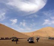 去的额济纳,顺便就玩了巴丹吉林沙漠北缘。真的是一片荒芜,除了黄沙就是黄沙。要想避免带回无孔不入的细沙,可以在大门口租鞋套。这个景点最有名的就是早晨拍摄驼队,其次就是诸如骑骆驼,开越野车之类的游乐项目