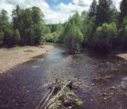 从根河到室韦就会经过莫尔道嘎,车子会穿行在大兴安岭中,道路两旁全是森林。现在是五月,正是封山防火期间,车子必须要有入山许可证,香烟和打火机都要上缴,以免引起火灾。莫尔道嘎很小,可是却集中了很多的铁锅炖。我们吃的是粘豆包铁锅炖,那味道真是太棒了。