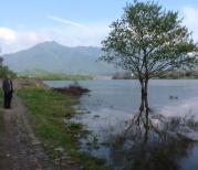 杜鹃湖也是火山堰塞湖,以每年春季湖周围盛开杜鹃花(野生的)而得名。 开始我们因为不是季节,还觉得很遗憾。但是跟着导游我们赶去拍落日,拍到了美丽的七彩云霞。