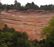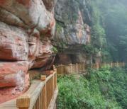 佛光岩被称为“世界丹霞之冠”,形成于恐龙称霸地球的侏罗纪、白垩纪。佛光岩呈弧形, 弧长1 0 0 0余米、高3 0 0余米。高2 0 0米的柱状大瀑布如银练般从云中泻下,飘逸俊洒。然后与血红的岩壁相互融合。同时,佛光岩景区也是一个植物王国,最多就是与恐龙同时代的植物化石——桫椤。昨天做了攻略,买了双程电瓶车票,一是这段路景色一般,二是路程较长。因为昨天走累了,只去了佛光岩一个景点就打道回府了。