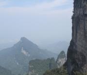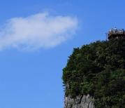 玉壶峰是天门山森林公园内众多山峰的一座,也是最高的几座之一,峰顶有一建筑物,需走一段栈道后才能爬到上面去,一般拍照只是远观比较好。