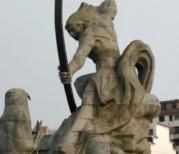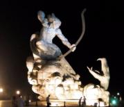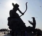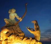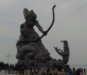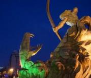 岳阳的巴陵广场,广场比较大,正对着洞庭湖,广场的中央有一个很大的雕塑,名字叫后羿斩巴蛇,晚上的时候人很多,广场的侧方有一条商业街的入口,直通到岳阳楼正门的停车场,街里有很多的商铺,也有很多特色小吃,吃货们逛完广场可以去那里转转。
