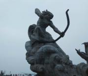 同样的巴陵广场,連著汴河街,岳阳楼,面对著洞庭湖,头天晚上到此一遊,人潮如織,应该是当地人晚上纳凉好去处,但除广场外,灯光昏暗繞了一大圈,看到了瞻岳楼及旁边的小楼,嚇了一跳,二个小楼,一个后羿射日大雕像,這不会就是岳阳楼吧,太失望了。繞过汴河街看到岳阳楼公园,黑漆一片,问人才知道晚上没开,还好,明早再来。