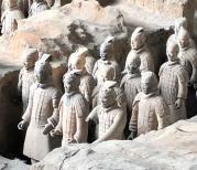 西安最出名的就是秦始皇兵马俑景点,世界第八大奇迹。去到西安,必须到这里看看。去兵马俑,坐车或地铁去火车站,再乘坐旅游5或者914、915,在火车站的东广场那边坐车。你看到很多人排队的那里就是旅游5(白色公交车,官方认证),旁边会有些人提醒你如果不想排队就去坐914、915,他们的车直达景点,但价格比旅游5贵一倍,旅游5去兵马俑要7块,去华清池要6块,914、915车要13块。旅游5车上配一个售票员兼旅游信息讲解员,让你对华清池和兵马俑有个初步的了解。到达兵马俑,买票后使用身份证进入景区里,在景区门口有官方的专业讲解员,90块一次,每个人再付8块钱的耳机费。进门口后,要达真正的景区,一号、二号、