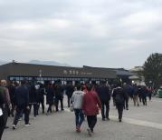包车一日游,上午去的兵马俑,国庆过后人相对少一点,但还是有很多老年团队。网购的门票不用换票,直接刷身份证就可以进入。进门口的左侧有购买电瓶车的窗口,¥5/人,看团队太多,为节约时间乘电瓶车进入的,一会会就到了。一号坑门口有大学生志愿者提供免费讲解,我们叫了一个,一路讲解并带着参观一号坑、二号坑、三号坑。一号坑是规模最大最壮观的。铜车马展厅里面也有免费的大学生讲解,站立式的那个是真品,后面一个是假的,展厅里面全是团队游客,围的水泄不通,都没法好好参观。听着讲解参观大约2小时左右,等11点出来乌泱泱的全是人,想参观兵马俑的还是建议开门就入园,不然全是人,越是下午人越多。兵马俑和皇