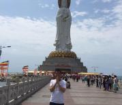 南山海上观音非常值得去,11月中旬来还是很热。这里的景色真的很不错,四面环海,据说这个海上观音比自由女神还要高15米,所以海上观音是世界上最大的石像了。观音圣像一面是手拿莲花,另一面是手拿金书,还有一面是手拿佛珠。