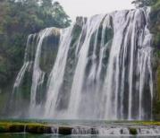 天星桥风景区是黄果树瀑布景区的一部分。随团游导游通常是到高老庄以后就返回了。其实从高老庄以后的景点才更是美妙,只是步行游览需要一定的体力。天星桥风景区景色优美,有桥上桥、天星洞、美女榕,更有银链坠滩瀑布。银链坠滩是由凹凸不平、起伏舒缓的巨大石头,围成了一个漏斗状的深滩,湍急的河流不断积聚力量,到达这里便成漫川飞瀑,倾泻而下,形成一个强大的漩涡,水花飞溅,水浪翻滚,水声轰隆作响。只要你来到此处,定然是驻足凝神,只要你看它一次,就会终身难忘。到此一览,只有震撼,绝无遗憾。