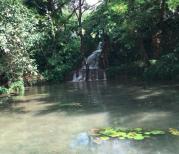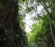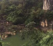 在天星桥景区内,一个很重要的景点,黝黑的山石有着各种奇秀的造型,配上葱茏的草木,无一不令人心生欢喜。有山无水是干涩的,此处山环水绕,是浸透了水分的鲜艳欲滴的绿,水灵如年龄女郎,令人心醉,令人流连忘返。