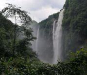 赤水大瀑布也叫十丈洞大瀑布,堪与黄果树大瀑布媲美,瀑布高76米、宽80米,比黄果树瀑布高8米、仅窄1米,是我国瀑布奇观之一。