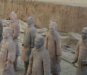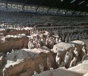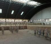 兵马俑——2000多年前的古墓,还有很多由于技术局限等待发掘,壮观雄伟,可以感受到当时大秦帝国的强盛以及嬴政的骄奢淫逸,兵马俑们个个高大威猛,形态各异,现在都是泥巴色了,其实当时是彩色的,只是出土后都被氧化褪色了。有三个坑,一号坑最大最壮观。七几发现兵马俑现在都是名誉馆长了,村民每年也都有分红。感谢秦始皇啊