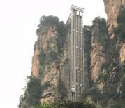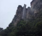 百龙天梯真的是建于悬崖绝壁之上,看上去蛮高很有几分吓人,但其实身在其中几乎没什么感觉,电梯速度快且平稳,上到一半后才可见到外面的风景