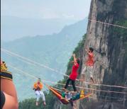 天门山景区,盘山公路很过瘾、刺激,999级天梯也不是一口气就可以上,穿山电梯不是一般的长,玻璃栈道玩的是心跳,悬索桥摇摇摇,索道7455米由山顶到火车站、历时28分钟。