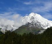 海螺沟景色美不胜收,因为来之前下了半个月的雪,山上积雪严重,我们的车不是四驱,爬不上去了,等着山下的朋友送来防滑链,耽误了时间,等到了三号营地,山上已经起雾了,没法上山一睹贡嘎雪山的壮观了,只有再找机会来!不过一路的景色已经美不胜收!