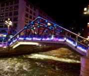 康定一一甘孜藏族自治州康定市沿河东路夜景 灯火通明岁序喜,情歌广场风情姿。棒棒哒里交谊地,琴弦演绎漫舞时。 转筒径,夜流辉,水晶殿里云天袂。滔滔溪河胥华梦,彩虹桥上韵依依!
