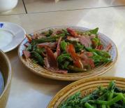 诺邓村离诺邓镇很近。平日里去的,人也很多。村边有一口盐井,据说两千多年了,是茶马古道的起点。山上的村民中,家家悬挂着整火腿,蔚为壮观。还有卖小坨盐的,超可爱。山脚下有一家农家乐,桌子板凳是用大石板,大木头做的。炒了一盘火腿青菜,要了一盆西红柿鸡蛋汤,艾玛,忒好吃了。