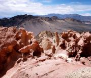 吐鲁番盘吉尔怪石林的景观很有特色,它与其它的石林不同,形态各异,或似羚羊或似猛兽或似天马或似云朵,颜色为青灰色和褐红色多见,岩石多为石岩纪火山形成。非常值得前去盘吉尔怪石林自驾游。
