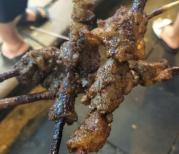 去西安一定不要去回民街,四个字概括,脏乱贵差。路上垃圾很多,收拾垃圾的车子和小吃摊和我们擦肩而过,一碗羊肉泡馍48一小碗,一小杯石榴汁10块一杯,还很难喝 这么一串烤肉10块一串,就三小块