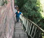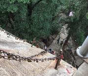 华山就一个字,累。在西安包车到了华山脚下,停车场是生态广场,停好车去买票,建议不要网络订票,现场买票速度很快,网络取票因为系统问题无法取票,白白浪费半个小时。进去后有去西索道和北索道的车,排队的地方口子上是西索道,里面是北索道,建议往里走,排西索道坐的人多,排队很长,可以直接走到北索道牌子下进去,人少,进去后是互通的,可以直接坐西索道的班车。班车到西索道大约40分钟,进去买索道票的地方也很方便,再次提醒不用网络订票,反而慢。