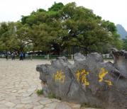 阳朔大榕树景区里的大榕树亭亭如盖,巨伞般伫立在天地间,很有历史沧桑感,榕树高17米,径围7米,覆盖面积约一千平方米。记得小时候看电影《刘三姐》,好像刘三姐最后和阿牛哥就是在这里情定终身的。