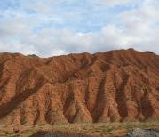 三月来高昌古城游玩,新疆的路修得真好,都是快速路,风驰电掣般地行进。眼前闪过一排排白色的风车群,闪过了王洛宾歌唱过的达阪城,进入了吐鲁番盆地。脑袋一阵阵发蒙,导游告诉我们这是海拔太低的反应。休息片刻,就去参观高昌故城。汽车继续在空旷的戈壁沙丘中开辟的高速路上奔驰,不一会儿跃入眼帘的是一片浅红色的山峦,山的颜色的确是红色的,寸草不生,山的褶皱波浪起伏。这就是火焰山了,荒芜的红色,起伏的褶皱,燥热的天气,恍惚中,无数的火焰在我眼前跳动。因为这里实在太热,我们没有停留多久,就又启程继续前行,赶在太阳落山之前来到了高昌故城。