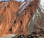 三月去安集海大峡谷,喜欢拍照的可以去哦,目前这个景点免费,没有班车前往,从奎屯打车去120元,会还价的可以再杀杀价,应该还有还价的余地, 大峡谷很深,落差200多米,我去的时候遇上前一晚下雪,峡谷一片晶莹,背风没有积雪处露出红色土层,当中午化雪后又是另一番景象,应该到6月份草皮绿了以后色彩就更丰富了,现在山坡上长着散发着特殊香味的小草,也不知道叫什么名称。