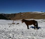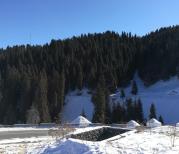 江布拉克里面到处是草原啊,哈哈哈。牛羊马都挺多的,视野开阔,美丽极了。渴了,随手抓一把雪吃;饿了,也抓一把雪吃。好像还真的不渴了、不饿了。本来我也想这样,但看到雪地里到处有马粪,还有好多羊屎蛋,我就放弃了,哈哈哈,确实没有工业污染。