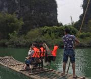 感觉遇龙河风景不错,天气好,心情放松!会经过9级小台阶滑下,其中第5级左右会比较大水花,注意抬脚。过程中可能会有当地的烤鱼叫卖,听说码头的价钱比这便宜一半。是否新鲜现烤就不清楚了。到头了,直接上岸吃饭,方便。