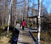 阿尔山三潭峡是哈拉哈河的源头哈拉哈河被当地人称为“母亲河”这儿的树木参差不齐清晨漫步在三潭峡的林中栈道一边呼吸着那城市里所没有的负离子 走累了可以倚在长凳上歇歇一路上都能看到栈道两侧有许多落叶这棵高约30米的兴安第一松大约有400年的树龄第二站我们来到了杜鹃湖一路走着鸟语花香差不多走到尽头时看到了一片没有树木的地方