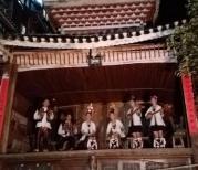 鼓楼是侗寨的重要标志。每个寨子都有一个鼓楼,肇兴侗寨景区里面有五个寨子,实䏡距离很近,现在开发的建筑已经让外人分不清寨子的界限,只是让我们十分方便的欣赏侗味十足的鼓楼了。从景区入口排列,依次是信团、智团、礼团、义团、仁团共五座鼓楼,都处在大街边上或在大街上可以看的横街上。各团鼓楼高矮、造型各异。最漂亮的是仁团鼓楼,旁边就是仁团花轿和戏台,这是景区唯一的三者合一的鼓楼,而且而对小河,傍晚时分去拍照,倒映十分漂亮。