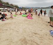 大东海的海岸线不是特别长,海水比亚龙湾要差一点,不过仍然是非常清澈的。沿海有好多星级酒店,也有很多民宿,各种档次都有。吃饭很方便,各种小吃冷饮也很方便。这次赶上台风过境,和台风来一次亲密接触,也是意外的收获。