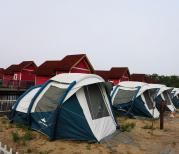 乐亭月坨岛离北京不远,周末可以去玩玩,从北京开车三多个小时可到。自驾车需要停在三贝明珠码头停车场,停车20元不限时。然后买门票+船票坐船去岛上。这天气轮渡船开着空调和窗户也很闷热,好在坚持一下,二十分钟到岛上。岛上有一条美食街,海鲜烧烤为主,还有不同的酒店,特色还是小木屋,周末价格比较贵,面积不大。酒店有小的游泳池和温泉池,海边浴场可以游泳,人不是很多,海水还算干净。晚上等都亮了,天也凉快点了,各个饭店坐满了人,喝啤酒吃海鲜,夜景很美。