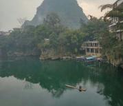 阳朔福利古镇不大,走过制扇区没一会就绕回我们刚老街时的那个路口,至于景区手册上写的那些有看头的风光貌似也都是分布在水边奇峰异石之类的景观,我们没有走过去罢了。看那些外国友人参观完陆陆续续上了旅游大巴开走,我和小毛还在毒辣辣的太阳下找寻可以落脚休息的地方。这里确实不同于兴坪,并未靠近漓江 精华段吸引不了太多过路游人,自然也就没有过多偏向闲情雅致的旅游发展,镇上的居民一边保留并推广传统的扇画工艺一边继续自己的生活,可以说福利古镇 还依然保有独特的原味。