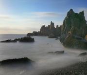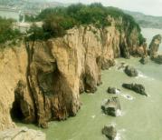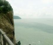 半屏山以泛舟环岛观光最好,因多数景点分布于岛东侧的强海蚀岸带,从海上仰观气象维肖,势尤奇险。