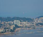 半屏山,一半在大陆,一半在台湾。这里就是大名鼎鼎的大陆半屏山。不过目前半屏山景区处于封闭状态,不营业,没办法进入到景区一观这壮丽的景色。我也只能航拍一下,看看这壮美的半屏山。