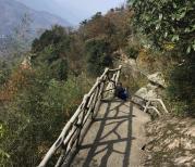 四明山地质公园山路弯道多多,从奉化开过来,六十公里费时两个半小时,公园不大,两小时逛一圈,初春,阳光灿烂,樱花才露尖尖角,树木萧瑟,可看的风景不多,那黄黄的是迎春花吗,开得很艳丽,晒晒太阳,吹吹风,一个下午就过去了