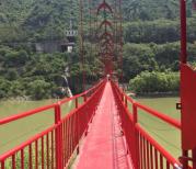 因为抱着娃娃没有爬到大坝的另一边,只看了石门栈道下段的新石门,真正的石门栈道要爬山翻过大坝才能看到。从售票处走到大坝脚下有很长一截路,可以坐小火车,7元每人。这一路上都是一些雕塑和壁画,全是后来修的,讲的是一些三国人物和典故,没什么看头。可以说我们就只走到了大坝脚下,看了看新石门,来的时候没坐火车,回的时候已经走不动了,只能坐火车回去。我就不知道为什么国内的很多景点都一定要留这么一长段路出来,就是为了让游客坐电瓶车?能多收点费用?很无语,景区大门直街就建在大坝底下多好,这样便有力气爬过大坝了。