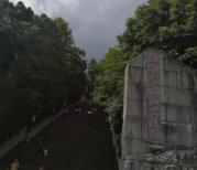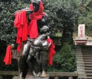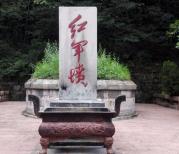 红军山这里没有大门,不需要购票进去,爬上三百多级台阶后,可以看到红军烈士纪念碑,庄严而肃穆地树立,纪念碑依山而建,是人们纪念当年长征红军的地方。