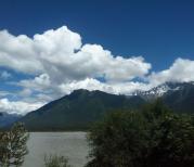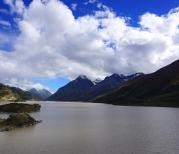 然乌湖是在318路上遇到的景色 很漂亮 湖面很大 我们下去拍照了 在岸边还有牛 对岸的山景特别美