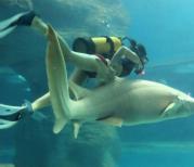 北海海底世界很不错,值得一游,每天有若干场表演,有人与鱼共舞喂鱼的,还有在海洋剧场,三层楼高的水族展缸内表演海底婚礼、人鲨共舞,人鲨共舞的鲨鱼很好玩,特别带孩子去能培养了解海底世界,长知识。
